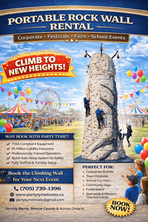 Our 25-foot Mobile Rock Wall is a massive vertical challenge that draws a crowd the second it arrives. Perfect for municipal festivals, school fairs, and high-level corporate team building, it offers a safe but thrilling climb for everyone from kids to adults.